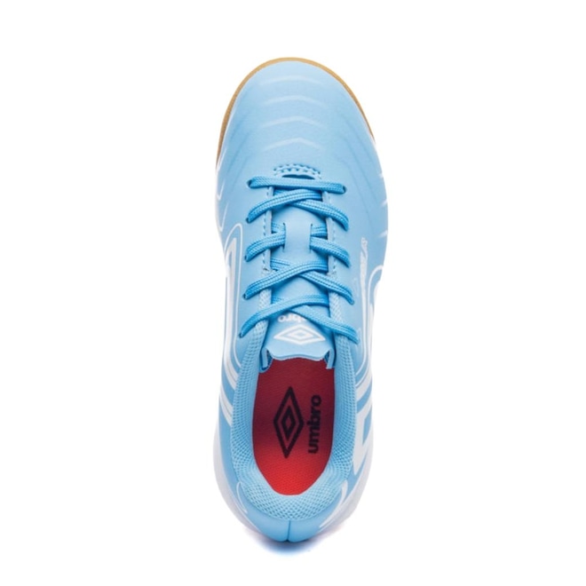 Seja o astro infantil das quadras com a Chuteira Futsal Umbro Pro 5 Jr. Ela é perfeita para as crianças e adolescentes que procuram conforto e qualidade para melhorar seu jogo. O cabedal (parte superior do calçado) é construído em material laminado emborrachado com grafismo personalizado, sistema de lingueta convencional e o autêntico Diamante Umbro aplicado em serigrafia na lateral. O solado de futsal possui entressola super macia em EVA de ponta a ponta com soleta em borracha, que proporciona maior durabilidade e aderência ao solo.