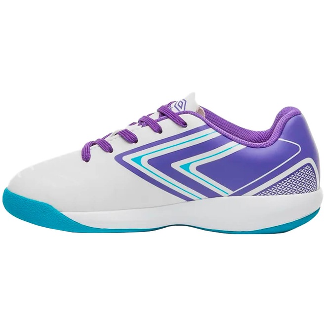 Seja o astro infantil das quadras com a Chuteira Futsal Umbro Pro 5 Jr. Ela é perfeita para as crianças e adolescentes que procuram conforto e qualidade para melhorar seu jogo. O cabedal é construído em material laminado emborrachado com grafismo personalizado e sistema de lingueta convencional. O solado de futsal possui entressola super macia em EVA de ponta a ponta com soleta em borracha, que proporciona maior durabilidade e aderência ao solo.