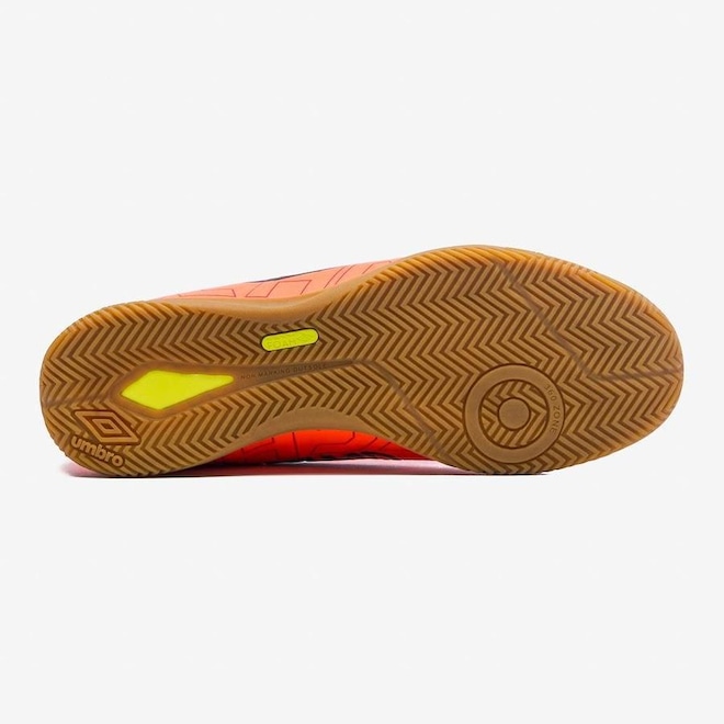 A Chuteira Umbro Techno para Futsal une design moderno e funcionalidade! Com grafismo 3D e grip frontal que aprimora o controle da bola, traz cabedal frequenciado com textura na região frontal. Possui forro traseiro em Mesh e palmilha em EVA. O solado emref: M146YQ