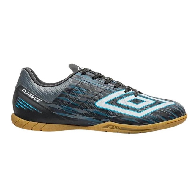 A Chuteira Futsal Umbro Ultimate foi desenvolvida com inspiração nas últimas tendências do cenário futebolÃstico, exibindo um visual arrojado que se destaca pelas artes gráficas exclusivas com cores vivas e modernas. Indicada para jogadores iniciantes que procuram por uma chuteira estilosa para dominar o jogo nas quadras. Cabedal assimétrico construÃdo em material laminado emborrachado liso, com toque macio, e detalhes em janelas de alta frequência. Possui forro traseiro em Mesh com acabamento superior luvado, grafismo camuflado geométrico em serigrafia, maxi Diamante Umbro aplicado na região frontal, assinatura do modelo na lateral externa da parte posterior e palmilha interna em EVA conformado para maior conforto. O solado Agile de futebol indoor é composto por borracha, que garante maior aderência e durabilidade.