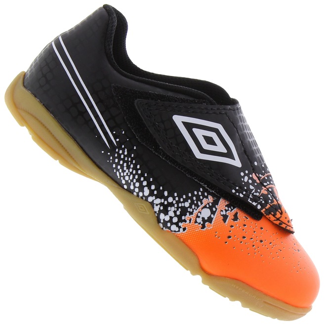 Cheia de estilo e confeccionada em material sintético, essa chuteira Umbro garante maior durabilidade e resistência nas quadras. Seu solado conta com borracha non- marking, que não deixa marcas e oferece excelente tração, e ponto de giro que permite melhor agilidade dos baixinhos dentro das jogadas. Além disso, para facilitar o calce, seu ajuste conta com tira elástica interna e aba superior protetora em velcro para maior segurança dos pequenos. Corra e compre a Chuteira Futsal Umbro Wave!