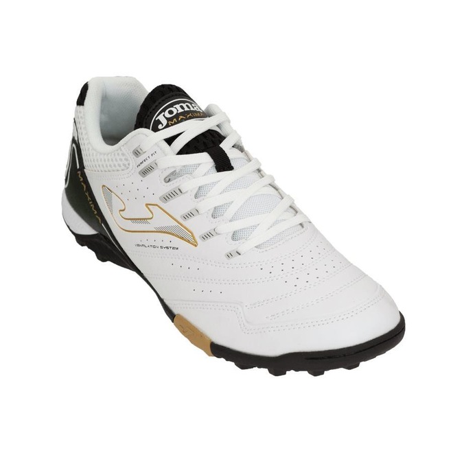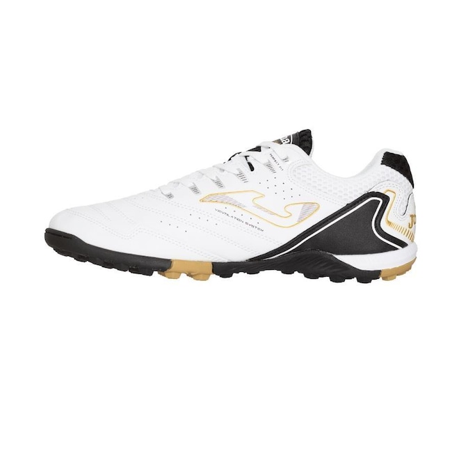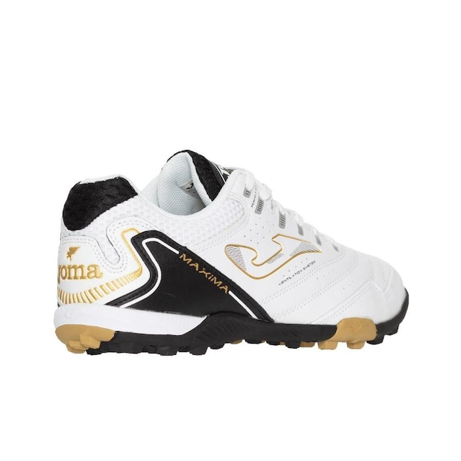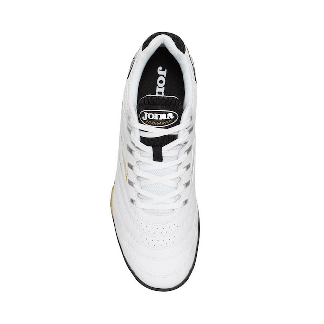 A Chuteira Joma Máxima Society tem um cabedal resistente feito em Micro PU com pontos estratégicos de nylon para ventilação, o forro interno em poliéster juntamente com uma palmilha lisa de EVA com 2MM acomoda o pé, o solado com borracha de alta resistência à abrasividade(DIN-70) e pontos de giros individuais nos pinos que garantem durabilidade e segurança aos movimentos.Ficha Técnica