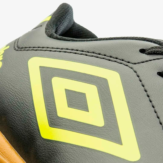 Jogue com classe, vença os adversários. O tênis de futsal Umbro Class eleva seu jogo. Seu cabedal, construído em material sintético, possui costuras programadas para maior reforço e auxílio na flexão do material. Ele garante velocidade e ótimas passadas em quadra. Solado em borracha mantém o pé firme durante as corridas e dribles desconcertantes.