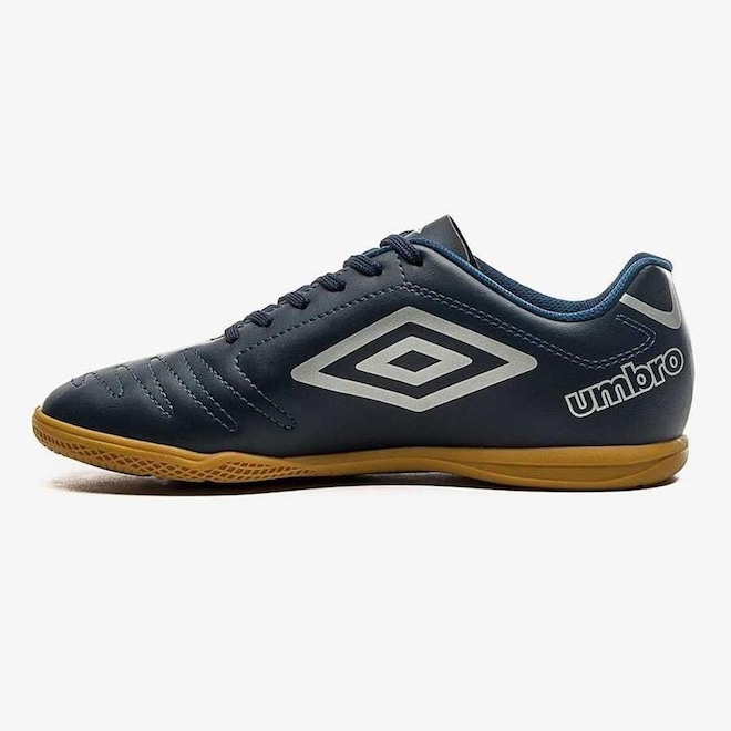 Jogue com classe, vença os adversários. O tênis de futsal Umbro Class eleva seu jogo. Seu cabedal, construído em material sintético, possui costuras programadas para maior reforço e auxílio na flexão do material. Ele garante velocidade e ótimas passadas em quadra. Solado em borracha mantém o pé firme durante as corridas e dribles desconcertantes.
