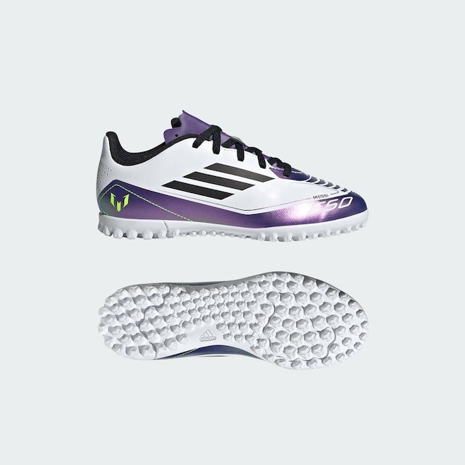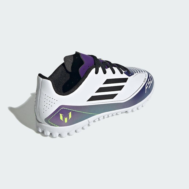 Velocidade F50, estilo Messi. Em 2024, a linha de chuteiras adidas de Lionel Messi foi criada para atender ainda mais às suas preferências. Macio e com suporte, o cabedal sintético desta chuteira infantil F50 Club inclui uma língua leve para maior conforto. Por baixo, o solado de borracha sulcado auxilia você a desempenhar movimentos habilidosos em superfícies de grama sintética. Este produto contém pelo menos 20% de materiais reciclados. Ao escolher o reciclado, podemos reutilizar materiais já criados, o que ajuda a reduzir o desperdício e a nossa dependência de recursos finitos, além de reduzir a pegada dos produtos que fabricamos.
