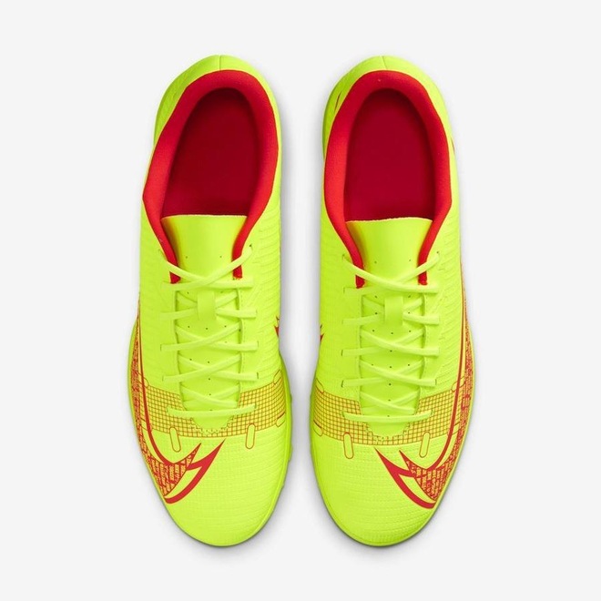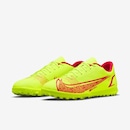 A Nike Mercurial Vapor 14 Club TF apresenta tela elástica em toda a parte de cima para proporcionar conforto e leveza.enquanto a sola de borracha ajuda a aumentar a tração na grama.