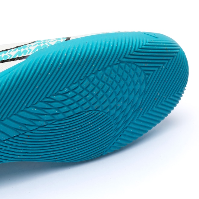 Um cabedal moldado em material sintético apresenta um padrão texturizado na parte superior para um melhor controle da bola em dribles velozes.