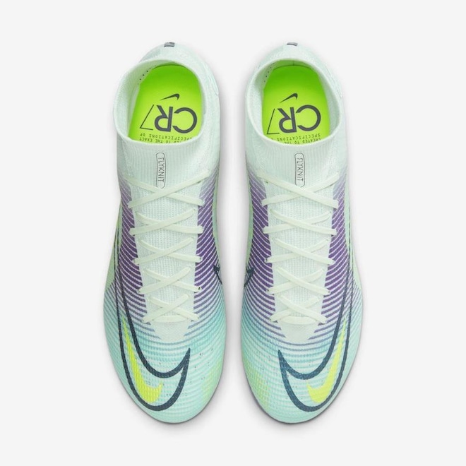 A Nike Mercurial Dream Speed Superfly 8 Elite incorpora a maior força autoproclamada de Cristiano Ronaldo: o poder da mente e da meditação.Tons suaves de verde funcionam em conjunto com tons energizantes de roxo e amarelo, que criam uma chuteira que irradia positividade.