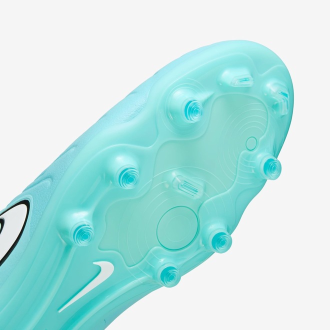 Está vendo os micropontos no cabedal? Eles ampliam as zonas de toque para chutes, dribles e passes. Eles criam uma aparência mais elegante enquanto removem o preenchimento extra. Melhor ainda, eles não sacrificam o controle de bola que você deseja em campo. Raspamos as cápsulas de espuma do Tiempo 9, para que seu pé fique ainda mais perto da bola quando estiver sob seu controle. Em vez disso, moldamos as linhas na chuteira. A tecnologia All Conditions Control (ACC) adiciona uma textura aderente em climas secos e molhados.