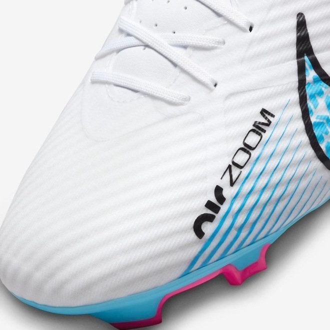 A unidade Zoom Air no calcanhar fica na placa e proporciona um nível extra de sensação de flexibilidade embaixo do pé que te ajuda a se movimentar mais rápido em campo. Ela cria separação quando mais importa - quer esteja marcando gols, sendo o primeiro a chegar na bola ou passando pela defesa.