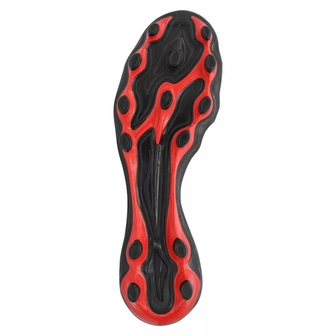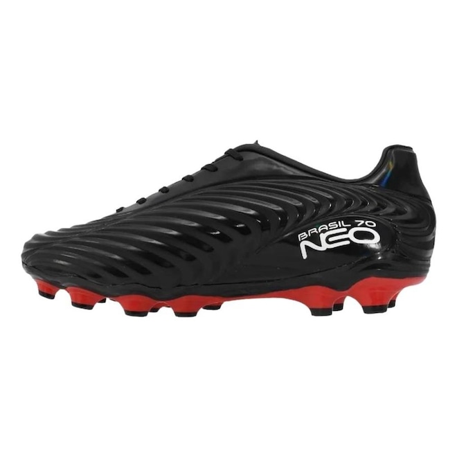 Tecnologias Anatomic Sys: Recortes anatômicos que permitem o encaixe perfeito do pé, além de flexibilidade total. HiperFlex: Canaletas posicionadas estrategicamente para auxílio na flexão e movimentação dos pés. Composição cabedal (parte superior): Confeccionado em material sintético Palmilha: PU conformada e removível; facilita na higienização Forro: Revestimento em material sintético com acolchoamento Solado: TPU, com travas circulares, altas e fixas Lingueta: Fina e flexível Cor predominante: Indicado para: Campo Origem: Nacional Ajuste: Cadarço Peso aproximado: 630g o par n°40ref: M0Z6LF