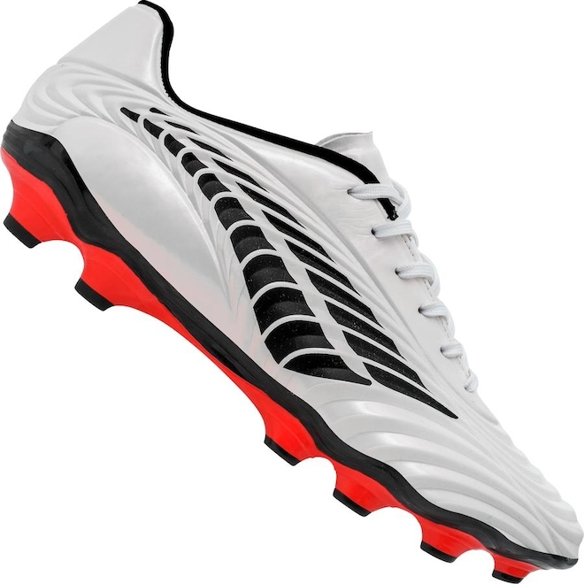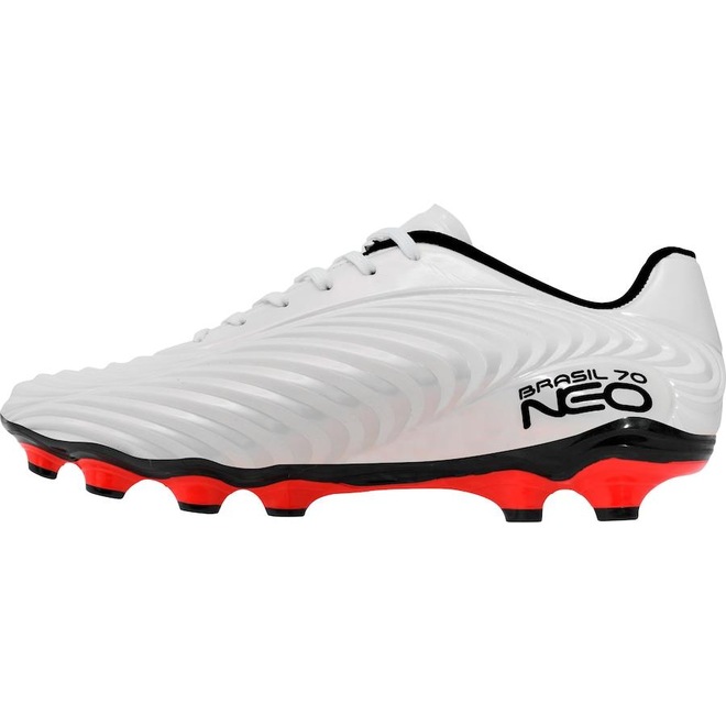 Tecnologias Anatomic Sys: Recortes anatômicos que permitem o encaixe perfeito do pé, além de flexibilidade total. HiperFlex: Canaletas posicionadas estrategicamente para auxílio na flexão e movimentação dos pés. Composição cabedal (parte superior): Confeccionado em material sintético Palmilha: PU conformada e removível; facilita na higienização Forro: Revestimento em material sintético com acolchoamento Solado: TPU, com travas circulares, altas e fixas Lingueta: Fina e flexível Cor predominante: Indicado para: Campo Origem: Nacional Ajuste: Cadarço Peso aproximado: 630g o par n°40ref: M0Z6LF
