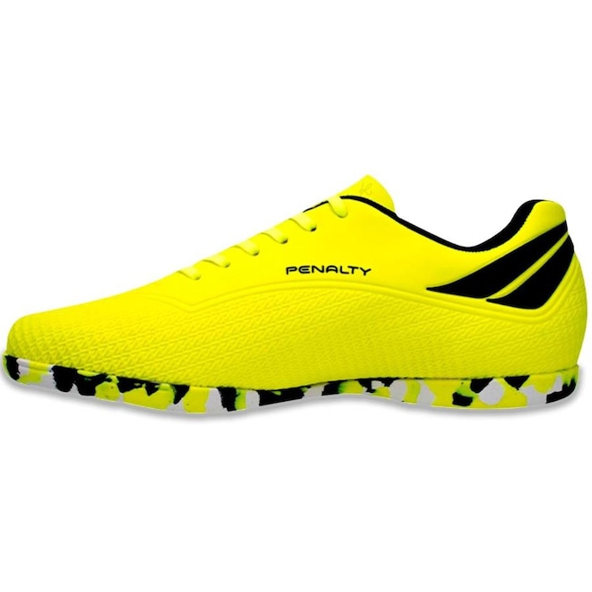Mostre suas habilidades com a Chuteira Futsal Penalty Fúria . A chuteira proporciona conforto, durabilidade e estilo dentro das quatro linhas. Seu solado em borracha e antiderrapante conta com pontos de giro que auxiliam nos movimentos. Conta também com a tecnologia Non Marking, aplicada na composição do solado além de não deixar marcas ou riscar no chão durante as mudanças de direção. A Chuteira Futsal Penalty Fúria conta com a tecnologia Hiperflex, são canaletas posicionadas estrategicamente para auxílio na flexão e movimentação dos pés. Conta também com a tecnologia Non Marking, aplicada na composição do solado. Possui cabedal com microfibra. Palmilha em Eva 3,5 mm proporcionando conforto durante os impactos no chão. A chuteira perfeita para você estufar as redes com estilo.