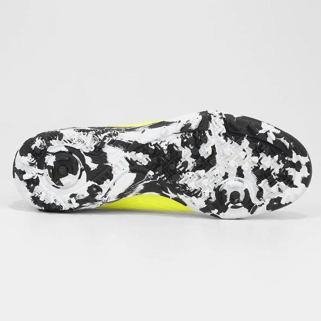 Seu solado em borracha conta com tecnologia Rotate, pontos de giro que auxiliam na movimentação ajudando na prevenção de lesões durante as partidas.