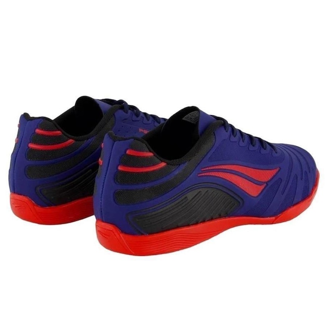 Tecnologias HiperFlex: Canaletas posicionadas estrategicamente para auxílio na flexão e movimentação dos pés. Non-Marking: Uma borracha que não marca a superfície e proporciona excelente tração. Soft: Palmilha em EVA, oferece maior conforto aos pés do atleta. Composição cabedal (parte superior): Material sintético texturizado Palmilha: EVA, forrada e removível; facilita na higienização Solado: Borracha antiderrapante Cor predominante: Marinho Lingueta: Fina e flexível Forro: Têxtil acolchoado Indicada para: Futsal Origem: Nacional Ajuste: Cadarço Gênero: Masculino Peso aproximado: 530g o par nº 40ref: M0ZBWA