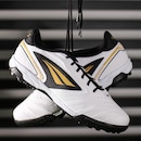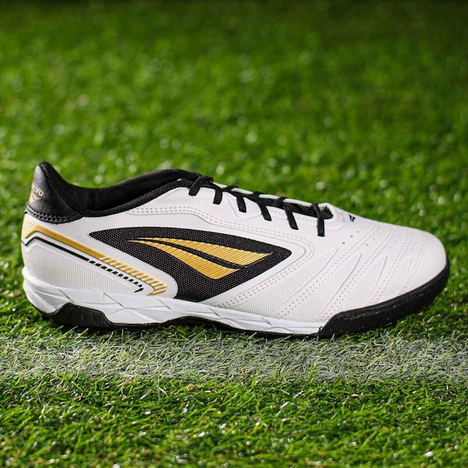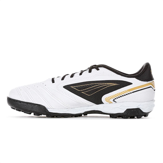 Chuteira Penalty Society Brasil 70 Y-1 Branco Preto e Dourado - Masculino: Conforto e resistência para a prática do society! Ficha Técnica Gênero: Masculino Indicado para: Futebol Society Cor: Branco, Preto e Dourado Cabedal: Micropower Solado: Borracha com tecnologia Hiperflex Palmilha: EVA Plana 3,5 mm   Conteúdo da embalagem: 1 par de Chuteira Penalty Society Brasil 70 Y-1 Branco Preto e Dourado - Masculino   A Chuteira Penalty Brasil 70 Y-1 é perfeita para jogadores de society, oferecendo leveza e controle de bola com o cabedal em Micropower. A tecnologia Hiperflex no solado garante flexibilidade e conforto em cada movimento.