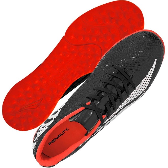 - Sobre o produto - Chuteira Society Penalty Storm Y-2 - Adulto- Descrição: Chuteira Penalty Society Storm Y-2 Preta e Branca - Adulto - Desempenhe seu melhor futebol com a Chuteira de Society da Penalty. - Com design clássico, o modelo traz cabedal produzido em material macio e levemente texturizado com calcanhar acolchoado para suporte e te deixar confiante para arriscar as melhores jogadas. - Essa chuteira society possui também uma camada em EVA localizada na entressola, oferecendo amortecimento leve e uma corrida mais suave. - Já o solado é emborrachado e conta com travas baixas que são perfeitas para você brilhar nas quadras de grama sintética. - Complete seu uniforme de jogo com a Chuteira Society Penalty e marque esse golaço. - DETALHES TÉCNICOS: - Gênero: Masculino - Indicado para: Futebol - Material: Sintético - Tipo: Society - Trava: Trava Fixa - Cabedal: Sintético texturizado para melhor controle de bola e calcanhar acolchoado para suporte - Entressola: Camada em EVA para amortecimento leve - Sola: TPU com micro travas fixas - Marca: Penalty - Garantia do fabricante: Contra defeito de fabricação. - ref: M0XFNG