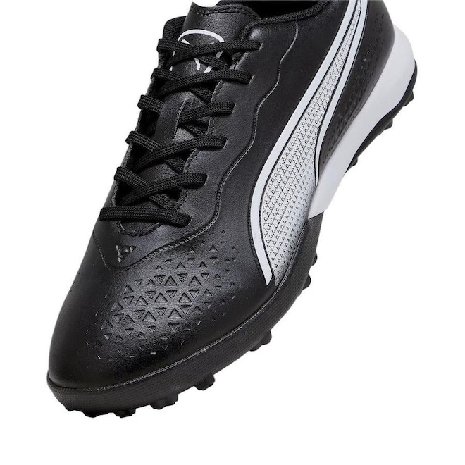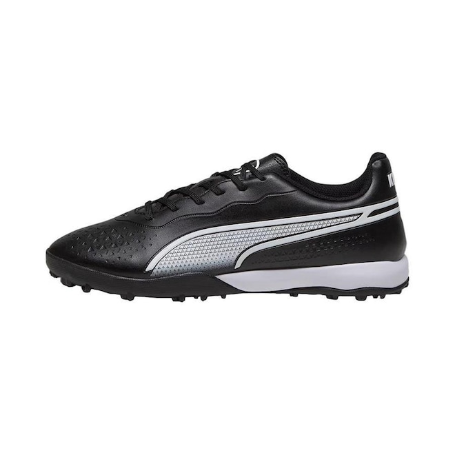Controle de bola nunca foi tão confortável. Um ícone que resistiu ao teste do tempo por várias gerações, a chuteira KING retorna municiada com um design atraente e materiais inovadores que beneficiam tanto o jogador quanto o planeta. O material do cabedal da chuteira KING MATCH é super macio contando com uma microfibra feita de materiais reciclaveis, reduzindo nosso impacto no planeta enquanto aumentamos o toque, conforto e a resistencia desta chuteira. Este novo modelo apresenta uma sola de borracha de perfil baixo que não deixa marcas e uma entressola EVA confortável, para que você tenha tanto controle sobre seus movimentos quanto sobre a bola.
