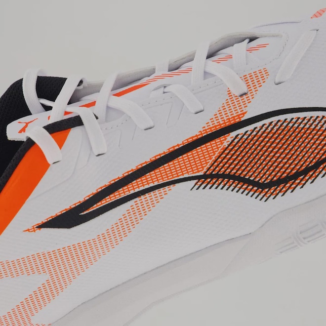 O cabedal sintético ultraleve proporciona um ajuste confortável, enquanto a estrutura em relevo reforça a estabilidade, permitindo cortes rápidos e mudanças de direção com mais segurança.