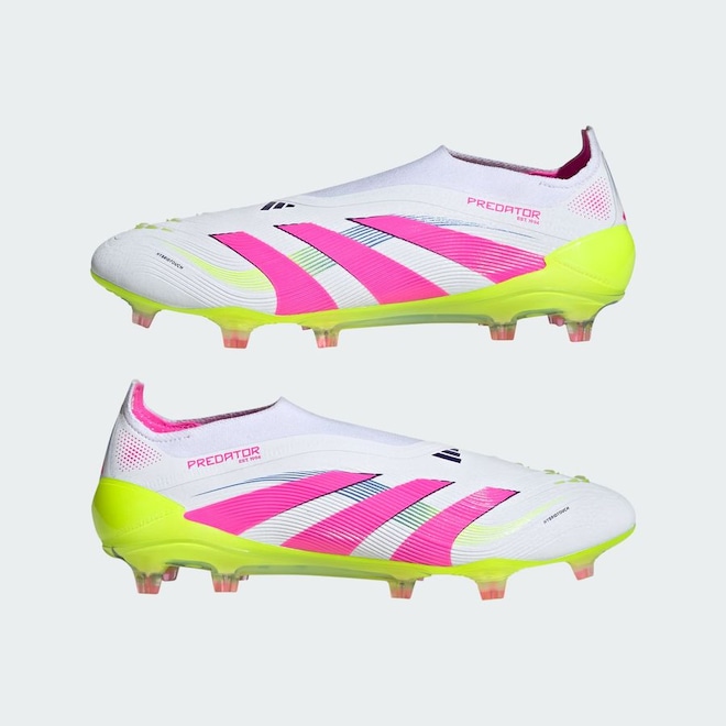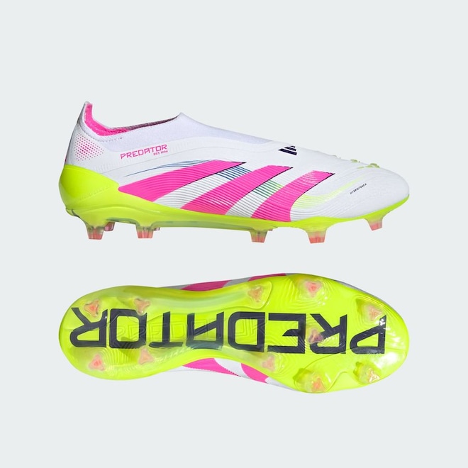 Entre em campo em qualquer jogo sabendo que você vai marcar gols com a chuteira adidas Predator Elite. Com aletas de borracha Strikeskin estrategicamente posicionadas e estrutura sem cadarços, o cabedal flexível HybridTouch foi desenvolvido para ajudar você a ter o contato perfeito com a bola. O solado Controlframe 2.0 para campo de superfície firme e o colarinho adidas PRIMEKNIT garantem estabilidade para atingir o seu objetivo.