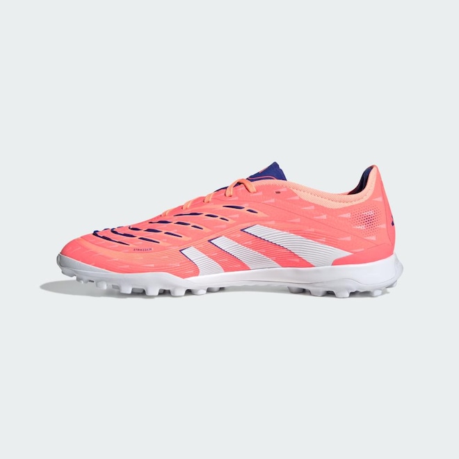 Descubra a diferença entre tentar marcar e ter certeza de que vai marcar com a chuteiras adidas Predator, feita para fazer gols. Essas chuteiras Pro têm um cabedal Hybridtouch flexível com nadadeiras Strikeskin de borracha aderente que ajudam a controlar cada chute da bola. sentado em um solado de borracha com sulco, a entressola Lightstrike de perfil baixo fornece suporte ao jogo instintivo na frente do gol.
