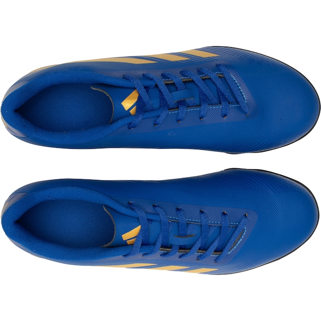 Reforço acolchoadoMaterial da Trava Borracha Tamanho da Trava Baixa Tipo de Trava Fixa Estampa do Logo Estampado no Cabedal Faixa Etária Adulto Garantia do Fornecedor Contra Defeito de Fabricação Conteúdo da Embalagem 1 Par SAC do Fornecedor ADIDAS: Brasil 0800 8 234 327 - Grande São Paulo (11) 2161 2961 Tecnologia(s) no Solado Traxion™: Travas moldadas para movimentos específicos do esporte, garantindo excelente tração, aderência e liberdade na hora certa. Nível Iniciante