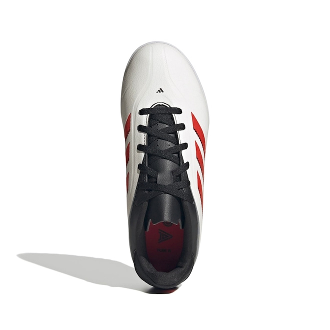 Os pequenos craques vão dominar as quadras com a Chuteira Society Copa Pure lll Club Infantil! Com máximo desempenho, controle e velocidade, essa chuteira é perfeita para as partidas em quadras de society. Seu cabedal resistente, com mix de texturas, garante durabilidade e um visual exclusivo, além de contar com uma estampa 3D na ponta para um toque diferenciado. Feita com pelo menos 20% de materiais reciclados, é uma escolha sustentável, unindo performance e respeito ao meio ambiente. O solado com pequenas travas oferece excelente aderência, garantindo movimentos rápidos e precisos. Não perca tempo e garanta já! Nome: Chuteira Society Adidas Copa Pure lll Club Infantil Gênero: Unissex Indicado para: Society/Quadras com gramado artificial Cabedal: Material Resistente Texturizado Solado: Borracha com pequenas travasDefinição da Tecnologia: Garantia: Produto original com garantia contra defeito de fabricação em até 90 dias após o recebimento da mercadoria. Origem: Estrangeira - importado no mercado interno Marca: Adidas