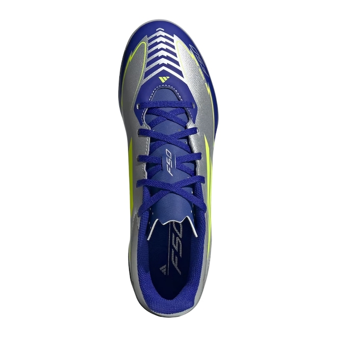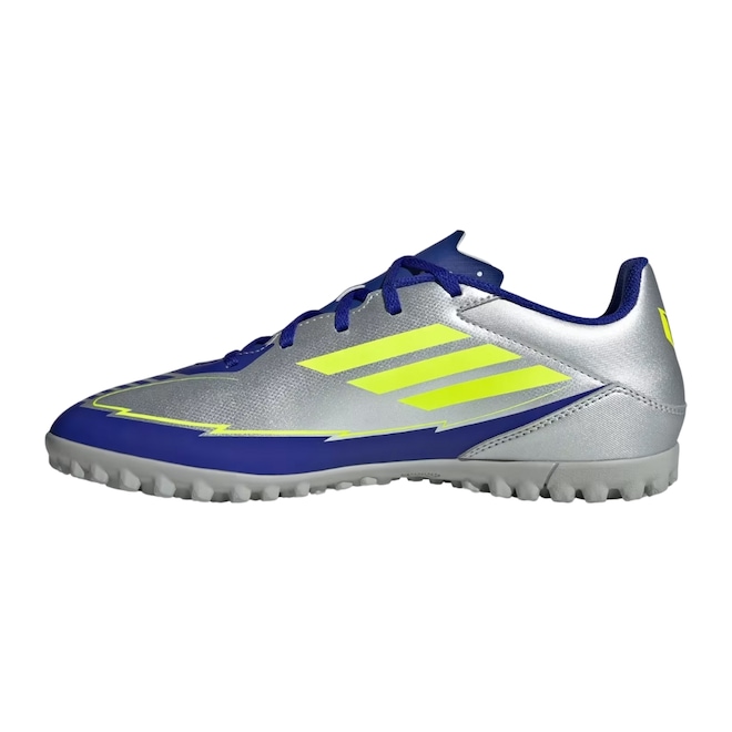 Ritmo lendário da F50. Habilidades hipnotizantes do Messi. Feitas para corresponder às preferências do melhor jogador de todos os tempos em campo, estas chuteiras adidas combinam um cabedal sintético de suporte com uma língua leve para que nada te distraia das decisões. Tudo isso em um solado de borracha com travas, capaz de evocar a magia do futebol em grama sintética.