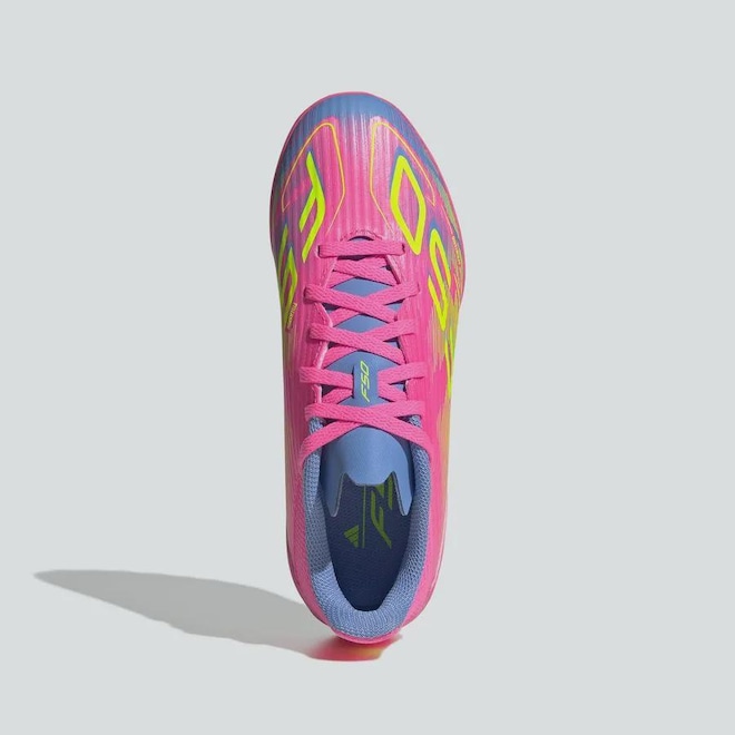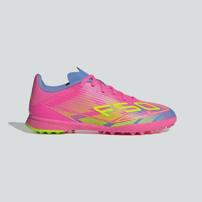 Ultrapasse seus limites com a leveza do calçado adidas F50, projetado para velocidade. Destacando-se com uma atraente estampa Sprintgrid, o cabedal Fiberskin desta chuteira infantil League usa uma língua de túnel adaptável que prende a chuteira nos pés. Apoiado sobre um solado de borracha sulcado feito para grama artificial, o EVA macio amortece cada passo.