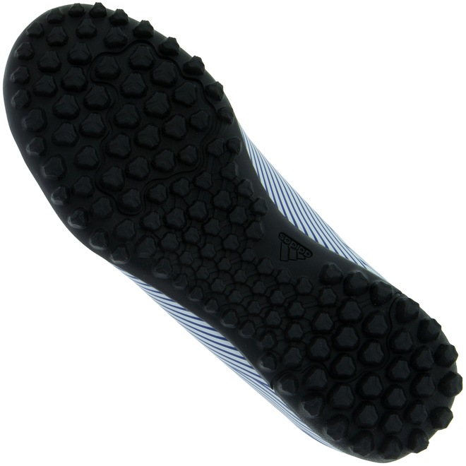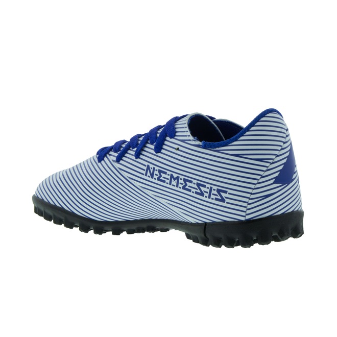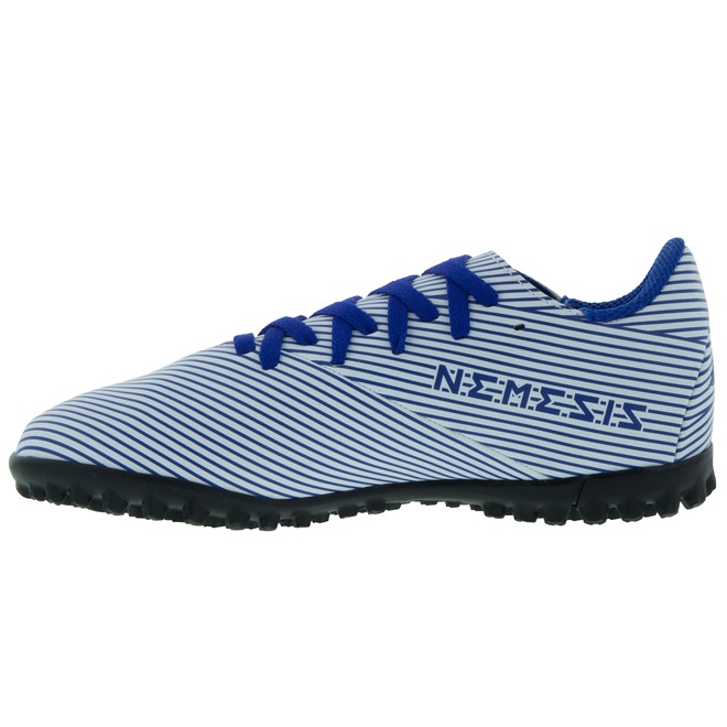 Chuteira de Society adidas Nemeziz 19 4 - InfantilNemeziz não é uma simples chuteira. Sua função é desenvolver suas habilidades para vencer, não para ganhar likes. Se você valoriza a celebridade acima dos troféus, ela não é pra você. Mas, se você está pronto para cruzar o campo e levar seu time à vitória, continue lendo. O cabedal sintético macio desta chuteira infantil se molda ao formato do seu pé, para te manter confortável enquanto você tece sua mágica. A monolíngua proporciona ajuste firme para estabilidade em qualquer movimento.
