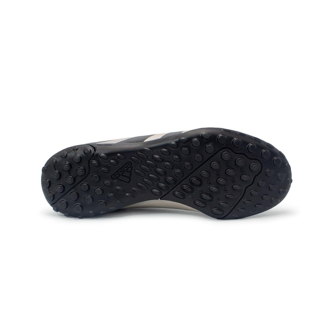 Com cabedal sintético, solado emborrachado e travas baixas e fixas, oferece estabilidade e aderência durante as partidas.