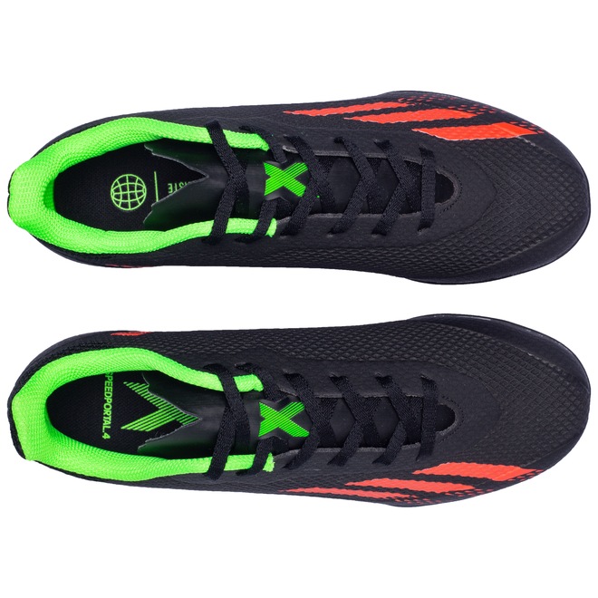 A chuteira society X Speedportal 22.4 possui cabedal (parte superior do calçado) em material sintético, facilitando a sua limpeza, solado emborrachado com travas baixas e fixas.