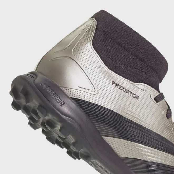 A Chuteira Society Adidas Predator League é a escolha perfeita para jogadores que buscam desempenho de alto nível, conforto e controle absoluto da bola. Com um design arrojado e tecnologias de ponta, essa chuteira vai elevar o seu jogo, seja no campo society, na quadra ou em qualquer terreno de futebol. Quando o objetivo está na sua mira, a adidas Predator converte a pressão em precisão extraordinária. Coberto com textura 3D e detalhes aderentes Strikescale na lateral, o cabedal Hybridfeel desta chuteira League é otimizado para chutes precisos. Na parte superior, o colarinho elástico Adiknit garante uma corrida estável. Abaixo, o solado de borracha sulcado oferece controle em quadras de grama artificial de society.