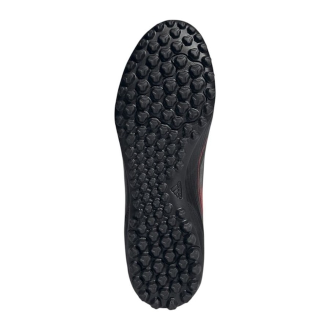 Solado: Borracha sulcada para maior aderência em grama artificial