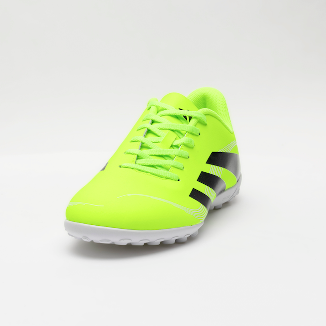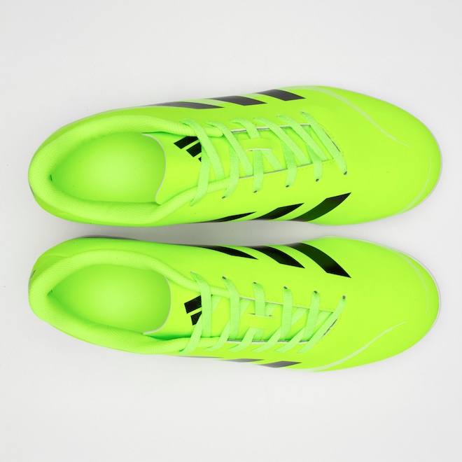 Com cabedal sintético durável e solado de borracha, você terá tração imbatível e estabilidade em cada movimento. A palmilha forrada e o forro têxtil com reforço acolchoado garantem conforto excepcional durante toda a partida. A lingueta fina e flexível proporciona um ajuste perfeito, permitindo que você sinta a bola como nunca.