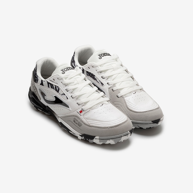 A chuteira Joma FS Reactive é ideal para partidas intensas, seu cabedal em couro natural tem a combinação perfeita de resistência e conforto, as perfurações do cabedal aliadas ao interior em têxtil 3D e peças no mesmo material na lateral e na língua formam a tecnologia VTS criando a ventilação necessária para oferecer um ambiente confortável ao pé, o conjunto de peças que forma o cabedal cria uma estrutura (PERFECT FIT) que se molda a qualquer pé garantindo mais sensibilidade ao toque na bola, peças em camurça na região de maior contato com a bola aumentam a proteção e durabilidade do calçado e proporcionam toques mais seguros e precisos, a entressola une uma peça generosa de EVA para amortecimento máximo e outra em FOAMREACTIVE que oferece ainda mais amortecimento e energia para iniciar o próximo movimento minimizando o desgaste do jogador, a estrutura do solado oferece pontos de giros em toda a sua extensão através de desenhos geométricos e ótimo flexibilidade para maior precisão dos movimentos e passadas mais naturais, a borracha desse solado tem a tecnologia DURABILITY para garantir mais durabilidade e maior precisão.