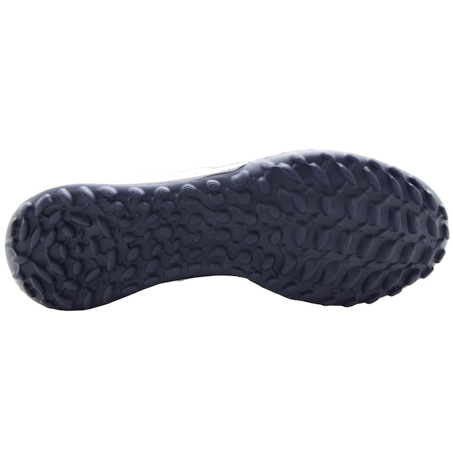 Seu design é predominantemente e além disso, a logo da marca ganha destaque nas laterais e na lingueta que, por sua vez, é fina e flexível com ajuste configurado através de cadarço. Por fim, o solado de PVC contém travas baixas e fixas, sendo indicado para society.