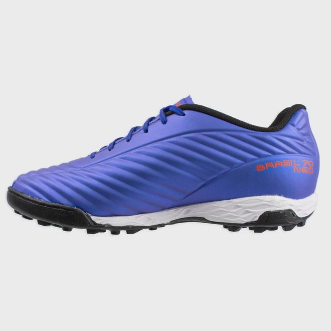 Nome: Chuteira Penalty Brasil 70 Neo Society Origem: Nacional Material cabedal: Sintético Material forro: Têxtil acolchoado Cor predominante: Azul Tipo: Society Solado: Borracha Palmilha: Poliuretano Peso: 685g (Referente ao par nº 40)