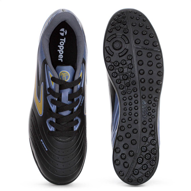 Domine o gramado sintético com controle absoluto e estilo! Chuteira Topper Society Liga Preto Chumbo e Dourado - Masculino Ficha Técnica: Marca: Topper Cor: Preto, chumbo e dourado Cabedal: Cabedal em sintético para resistência e flexibilidade Gênero: Masculino Palmilha: Têxtil Sola: Borracha Fechamento: Cadarço Estilo: Controle Lingueta: Fina e flexível Tecnologias: Solado com tecnologia Gripzone para máxima aderência e tração Entressola: Leve e confortável Indicação: Partidas de society Detalhes: Símbolo da marca nas laterais da chuteira Mostre quem manda no society com a Chuteira Topper Liga. Porque investir: Seu cabedal em material sintético oferece resistência e conforto, permitindo um ajuste seguro para cada jogada. O solado com tecnologia Gripzone proporciona tração superior, garantindo estabilidade e agilidade em gramados sintéticos. Com design moderno e estrutura leve, ela é perfeita para quem busca performance, segurança e estilo em cada movimento. Conteúdo da embalagem: 1 par de Chuteira Topper Society Liga Preto Chumbo e Dourado - Masculino