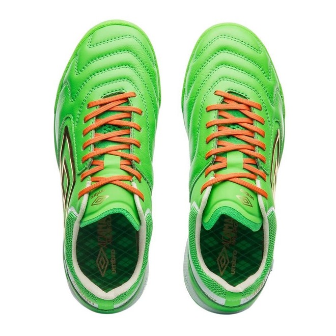 Nome: Chuteira Umbro Society Ada Master Class Gênero: Masculino Indicado para: Society Detalhes: Costuras de reforço e linhas de flexão nos pontos de maior contato com a bolaCaracterísticas: Caixa especial e adesivos inspirados em ícones da tradição do St. Patrick’s DayCabedal: Em couro nobre Napa Premier na parte frontal e no talãoEntressola: Em EVA com composto BUMP, proporcionando amortecimento e alto retorno de energiaLingueta: Fina e macia Palmilha: Palmilha interna em EVA conformado e forradoSolado: 60% Borracha, 40% Eva Terreno: Gramado sintético Fechamento: Cadarço, acompanha 2 cadarços reserva Marca: Umbro Código do Artigo: U03FB00355-529