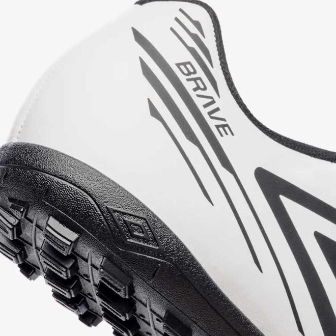 A Chuteira Society Umbro Brave é ideal para quem busca desempenho, conforto e durabilidade nos gramados sintéticos. Produzida em material sintético resistente, oferece leveza e ótimo controle de bola, enquanto o design moderno com detalhes gráficos dá um toque esportivo ao visual. O solado emborrachado com travas baixas garante excelente tração, estabilidade e segurança durante as jogadas. Com fechamento em cadarço que proporciona ajuste firme e personalizado, é perfeita para treinos e partidas de futebol society com máximo conforto e performance.