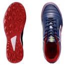 O solado com combinação de TPU e EVA oferece equilíbrio entre estabilidade e tração, enquanto as travas são ideais para gramados artificiais, favorecendo mudanças rápidas de direção e maior aderência.