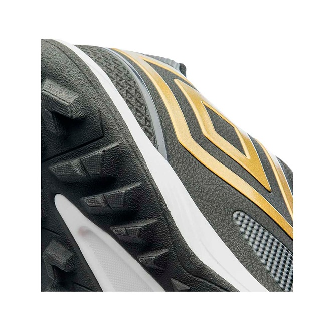 Seja o astro dos jogos com a Chuteira Society Umbro Pro 5 Bump Club: a Pro 5 Club que você já conhece, agora com tecnologia BUMP na palmilha interna para maior amortecimento. O cabedal é assimétrico, construído em material laminado com textura emborrachada. Possui detalhes em alta-frequência combinados com serigrafia de três cores e detalhes em verniz com costura frontal para reforço. Solado de society HG de entressola de EVA de ponta-a-ponta e soleta em TPU, além de costura de reforço frontal.