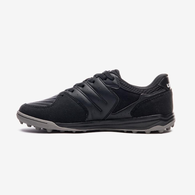 A Chuteira Society Umbro Pro Challenge Uptake traz inovação e desempenho para o futebol society. Seu design inspirado nos tênis court alia estilo e funcionalidade, com cabedal assimétrico feito em material sintético, camurça e microfibra extra macia na parte frontal. A tecnologia Soft Blue na palmilha garante amortecimento, enquanto a entressola em EVA e o solado em borracha antiderrapante com Vortex Grip e travas cônicas proporcionam máxima tração e estabilidade.