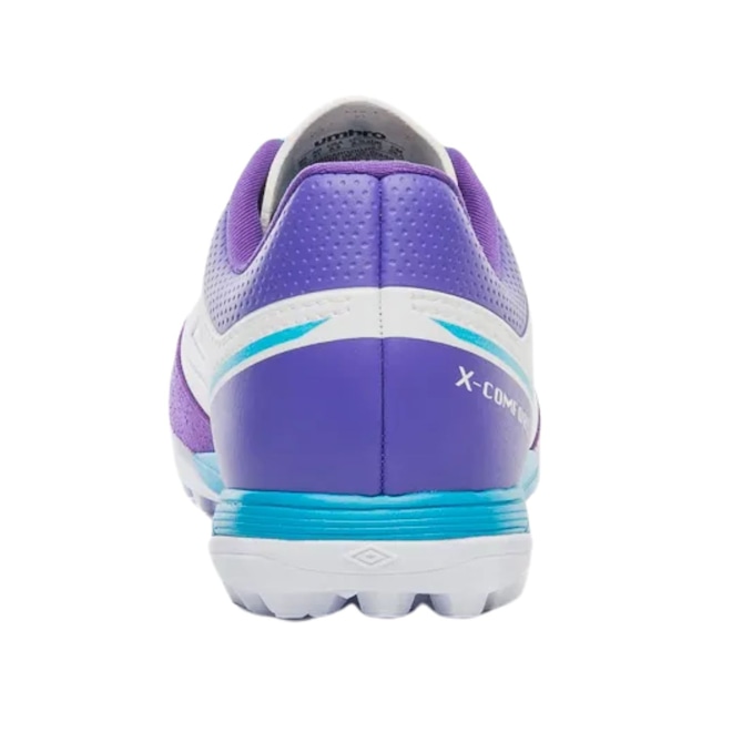 A chuteira de futebol de society Umbro X-Comfort proporciona acolchoamento, bem-estar e vida útil prolongada. O modelo possui o sistema BREEZE SYSTEM de elevada capacidade de respiração, que consiste em áreas perfuradas estrategicamente posicionadas para otimizar a circulação do ar. A palmilha interna X-Comfort feita de EVA e a sola constituída do mesmo material de ponta a ponta conferem absorção de impacto a cada passo.
