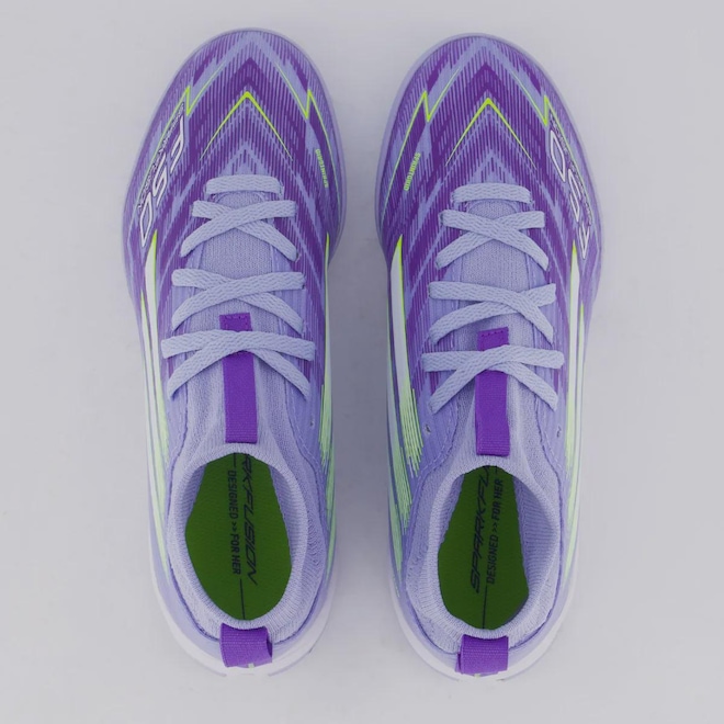 Sprintgrid: Recurso aplicado ao cabedal da chuteira que combina leveza e suporte estrutural. Seu design em grade oferece estabilidade nas mudanças rápidas de direção e contribui para maior precisão e controle em alta velocidade.- Composição Cabedal (parte superior): Sintético com partes em têxtil