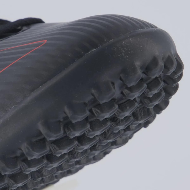 TecnologiasSprintgrid: Recurso aplicado ao cabedal da chuteira que combina leveza e suporte estrutural. Seu design em grade oferece estabilidade nas mudanças rápidas de direção e contribui para maior precisão e controle em alta velocidade.FIBERSKIN: Cabedal leve e resiste para suporte e amortecimento, favorecendo o controle e a precisão nos movimentos em alta velocidade.Composição cabedal (parte superior): Material sintético texturizadoPalmilha: Em EVA, forrada e removível; facilita na higienizaçãoForro: Material têxtil com acolchoamento reforçadoSolado: Borracha colada com micro travas fixasCor predominante: PretaLingueta: Fina e flexívelOrigem: ImportadaGênero: UnissexAjuste: CadarçoIdade: JuvenilPeso aproximado: 430g o par nº 33