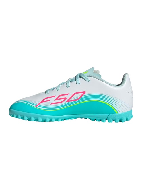 Deixe as crianças experimentarem a emoção do futebol com as Chuteiras Society F50 Messi Club. Inspiradas nas preferências de Messi, foram criadas para serem leves e macias nos pés, ajudando as crianças a se movimentarem com uma velocidade revolucionária.Criada com um cabedal sintético leve, essa chuteira oferece suporte e amortecimento para crianças ativas. O fecho de cadarço permite uma modelagem firme, oferecendo conforto e estabilidade no campo. O solado de borracha foi desenvolvido especificamente para campos Society, oferecendo tração e aderência ideais em fibras sintéticas de lâmina curta.A língua flutuante sintética com furos proporciona mais respirabilidade, mantendo os pés refrescados durante o jogo. Com a icônica marca Messi e o logo adidas, esse tênis é uma escolha inteligente para jovens entusiastas do futebol que desejam jogar como seu herói.Deixe as crianças começarem a jornada no futebol com confiança e estilo, sabendo que estão equipadas com uma chuteira que apoia todos os movimentos.Modelagem padrão