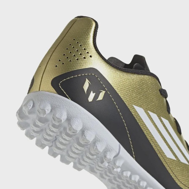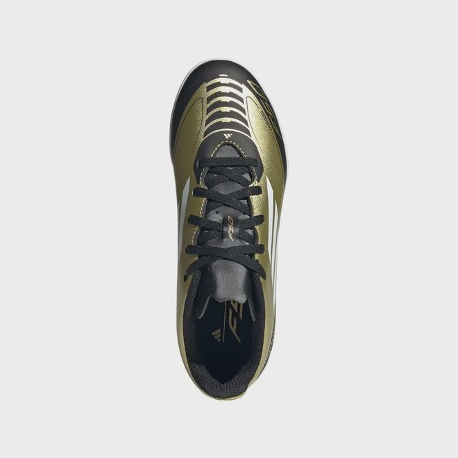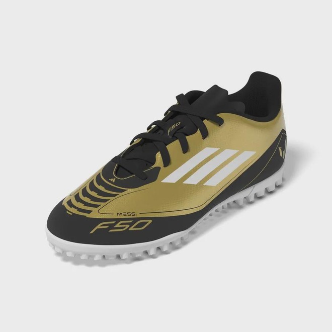 Velocidade F50, estilo Messi. Em 2024, a linha de chuteiras adidas de Lionel Messi foi criada para atender ainda mais às suas preferências. Macio e com suporte, o cabedal sintético desta chuteira infantil F50 Club inclui uma língua leve para maior conforto. Por baixo, o solado de borracha sulcado auxilia você a desempenhar movimentos habilidosos em superfícies de grama sintética.