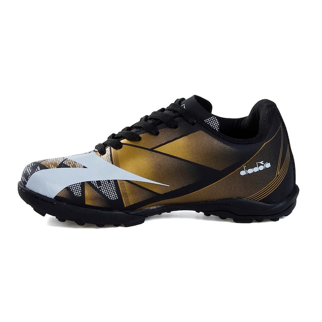 A Diadora Squadra II Society Preto e Dourado é indicada para jogos em gramados sintéticos, proporcionando mais controle, agilidade e desempenho a cada jogada.